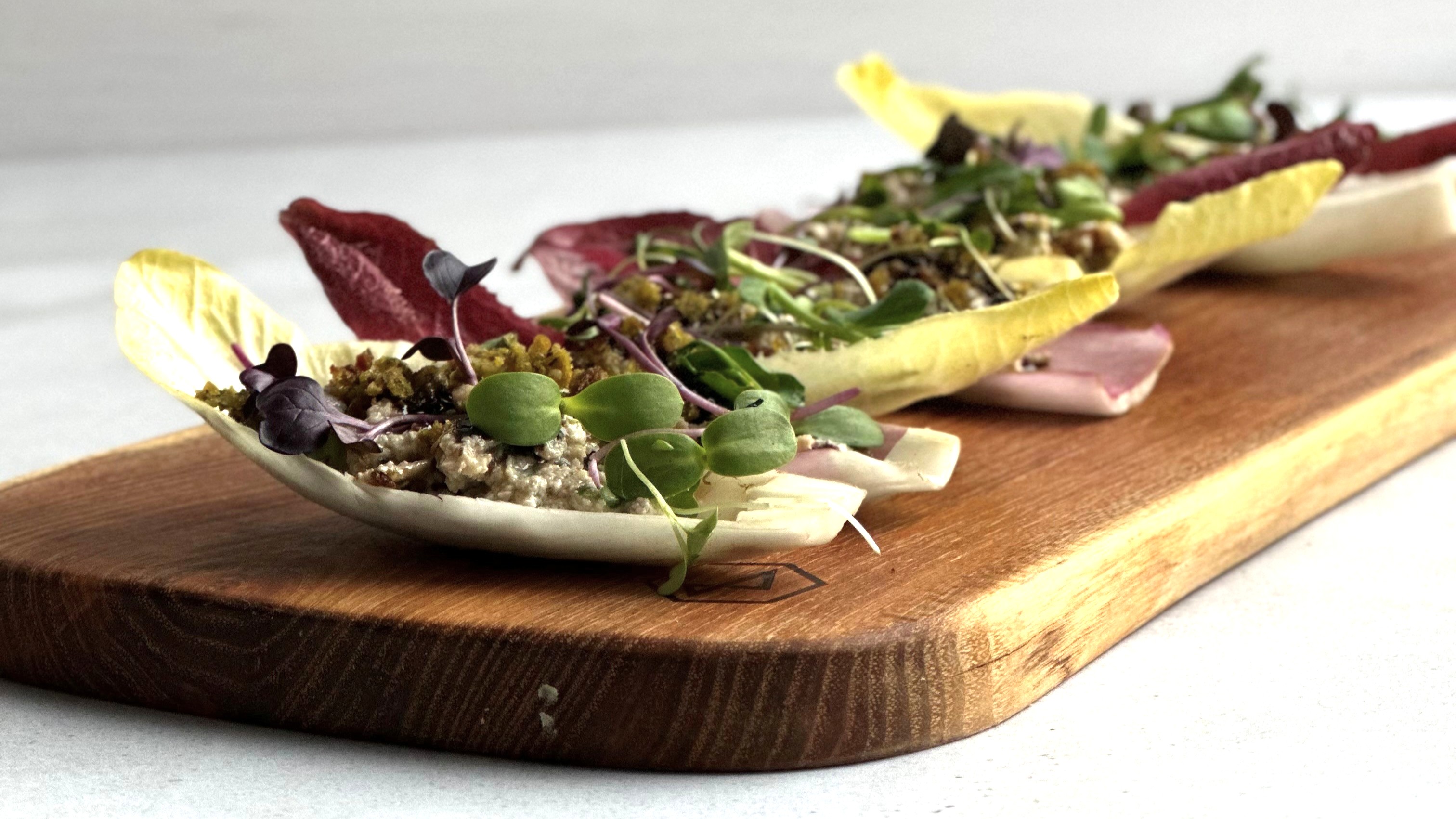 Met deze aperitiefhapjes breng je een ode aan lekkers van Belgische bodem. Witloof & microgroenten zorgen voor de frisse crunch. Artisjokcrème en falafelcrumble maken het smaakfestijn compleet.